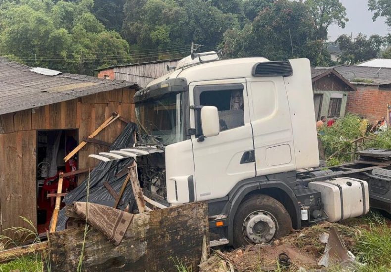 Caminhão sai da pista e atinge casa em Passo Fundo