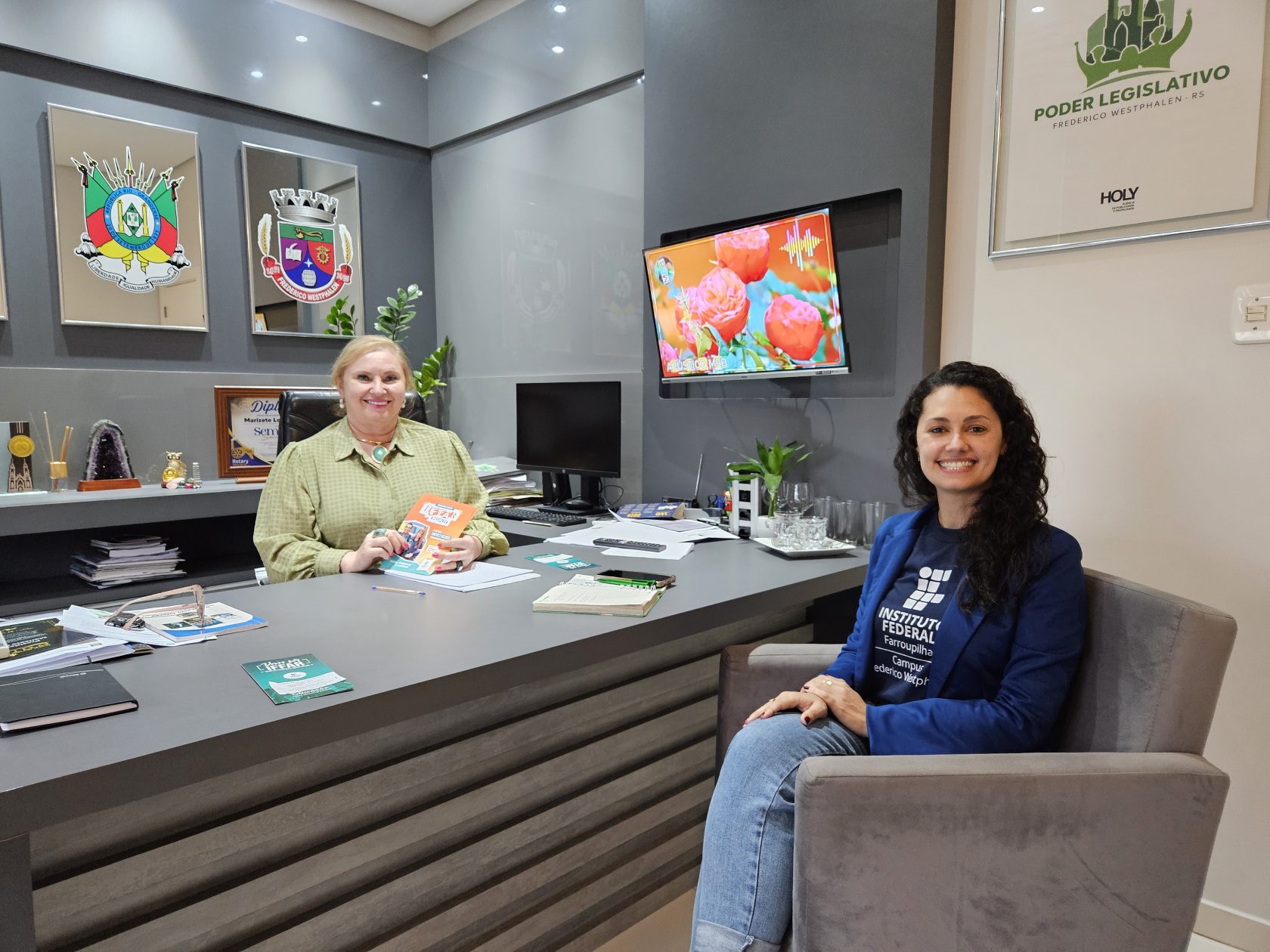 Na manhã de terça-feira, 30 de setembro, a presidente da Câmara de Vereadores de Frederico Westphalen, Marizete Frozzi, reuniu-se com a diretora de Planejamento e Desenvolvimento Institucional do Instituto Federal Farroupilha (IFFar-FW), Maíra Giovenardi. Durante o encontro, foi confirmada a realização da 2ª edição do IntegraLegis, marcada para o dia 5 de novembro, às 14 horas, no Plenário da Câmara.