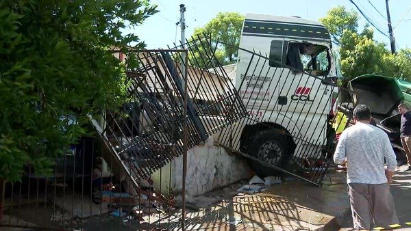 Um caminhão desgovernado atingiu três casas na manhã de quinta-feira (11) em Santa Rosa, no Noroeste do Rio Grande do Sul. O acidente ocorreu enquanto trabalhadores recolhiam, com o caminhão, uma máquina usada para fazer asfalto. Os dois motoristas envolvidos, de 39 e 47 anos, sofreram ferimentos leves.