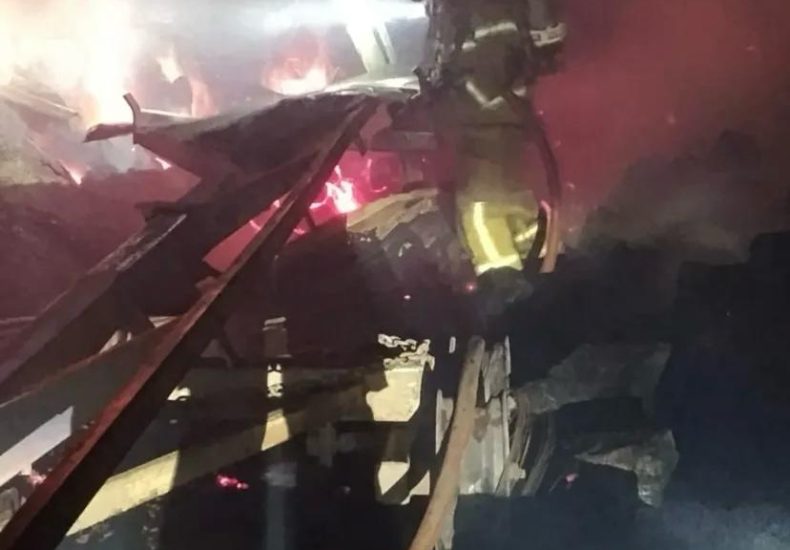 Bombeiros Militares de Sarandi atendem incêndio em galpão na Linha Estancado Alto