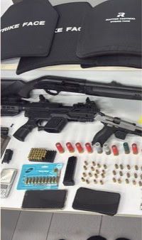 Na residência, duas pistolas, uma espingarda, munições, porções de cocaína e maconha, uma balança de precisão e celulares foram apreendidos. Os policiais também recuperaram um veículo roubado que estava com placas clonadas.