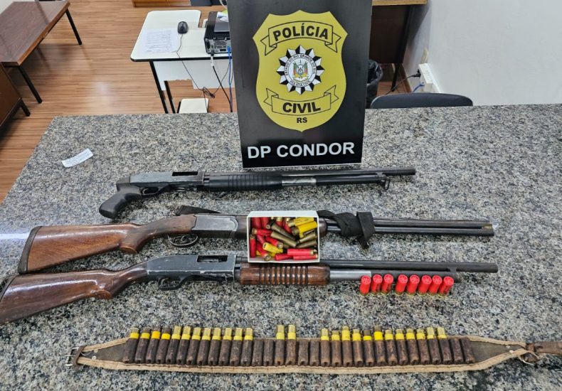 Mandado de busca e apreensão foi cumprido com apoio da Delegacia de Panambi no combate à posse ilegal de arma de fogo A Polícia Civil apreendeu três espingardas e diversas munições durante o cumprimento de um mandado de busca e apreensão realizado na manhã de terça-feira (16), no interior do município de Condor. A ação