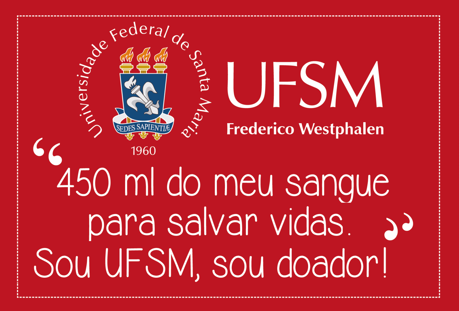 O dia 8 de junho será reservado para a Campanha de Doação de Sangue, que ocorrerá das 9h às 12h e das 13h30 às 20h, no hall de entrada da Universidade Federal de Santa Maria campus Frederico Westphalen. A campanha tem parceria com a UFSM-FW, UFSM-PM, Hemocentro de Palmeira das Missões e a Prefeitura de