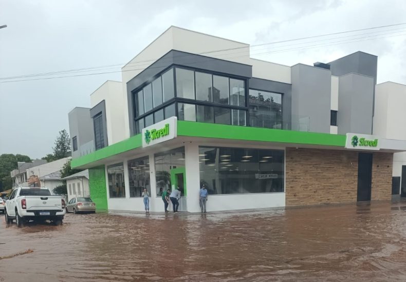 Uma forte chuva registrada na tarde de terça-feira (23) provocou alagamentos, transtornos e prejuízos no município de Rondinha. Em cerca de 25 minutos, o acumulado ultrapassou 100 milímetros, volume que a tubulação da região central não suportou, conforme informou a Administração Municipal. O grande volume de água causou o transbordo da sanga Mottin, próxima à
