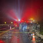 Ônibus com 35 passageiros tomba na BR-293 após motorista parar no acostamento