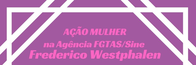 Evento é promovido pela Agência FGTAS/Sine A agência da Fundação Gaúcha do Trabalho e Ação Social (FGTAS/Sine) de Frederico Westphalen, em parceria com a Administração Municipal, Sala do Empreendedor e Associação Comercial, Industrial e de Serviços (ACI-FW) promove, no dia 27, a Ação Mulher. O evento será realizado na sede da agência em dois momentos,